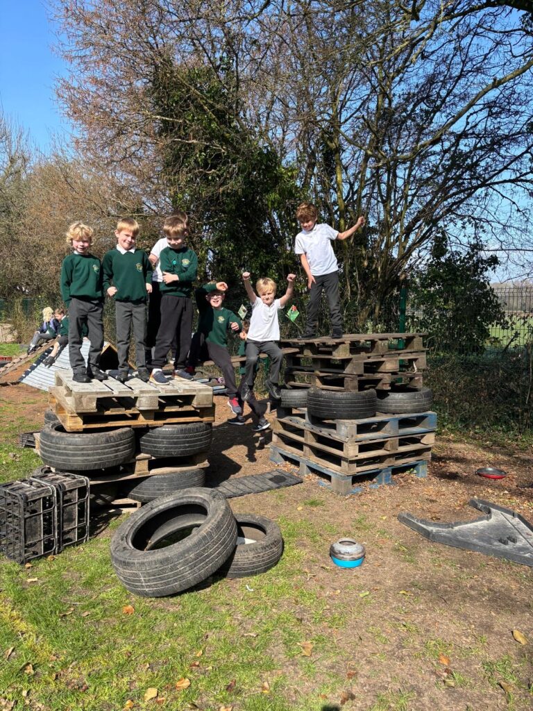 The majority of our equipment is donated by our school community and we have received some amazing items so far; boats, kitchen equipment, chairs, pallets, sinks, buckets, steering wheels, tubes, gutters, shirts, clothes, suitcases, toy cars, small world play, Lego, scooters, bikes, Duplo, office equipment and the list goes on. In addition, our amazing PTA have raised funds to pay for other elements of our OPAL provision – our OPAL shed, huge sandpit, slack lines, scooters, football goals and basketball hoops.